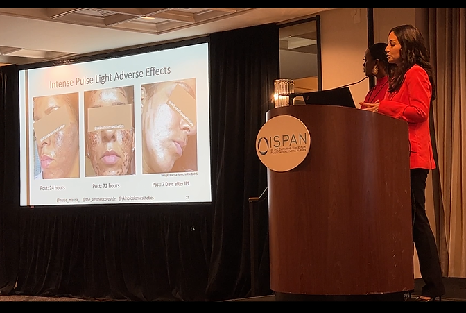 That same year, I co-founded Skin of Color Aesthetics, an educational platform focused on safely and effectively treating ethnic skin types. My work has taken me across the country, where I’ve spoken at numerous aesthetic conferences on best practices for treating diverse skin tones.